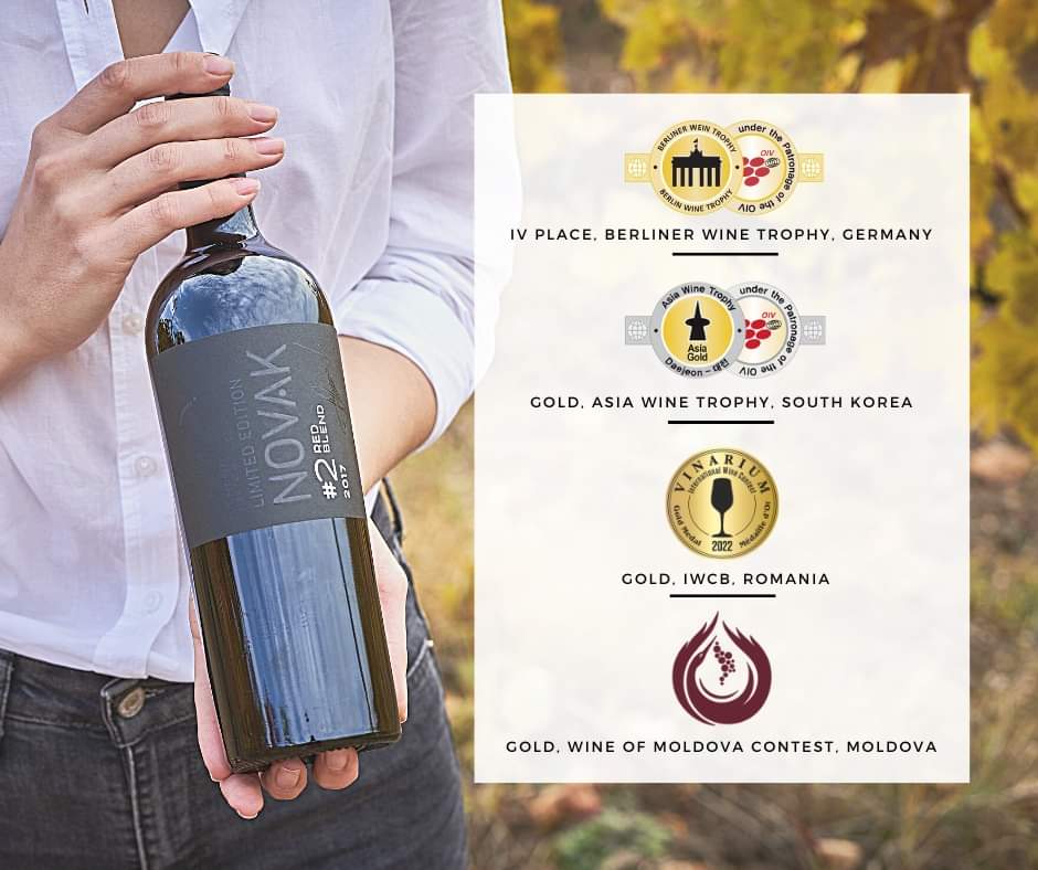 De #2 Red Blend 2017 van Novak Winery is een blend van 50% saperavi, 25% merlot, 20% cabernet sauvignon en 5% feteasca neagra en hij heeft 6 maanden gerijpt in barriques van Frans eikenhout. De wijn maakt ook deel uit van het vlaggenschip van de wijnmaker, de Black Label-lijn, en is geproduceerd in een beperkte oplage, want er zijn slechts 5900 flessen van gemaakt.